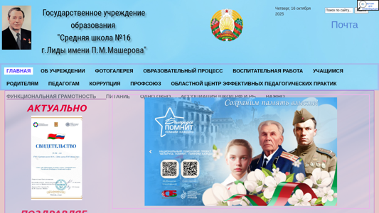 | Название / Заголовок | Государственное учреждение образования "Средняя школа №16 г. Лиды" |