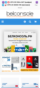 | AI-анализ | --- The website is an e-commerce store specializing in video game consoles and games for sale in Minsk, Belarus, with delivery available throughout the country. Customers can purchase PlayStation and Xbox consoles, as well as a variety of games and accessories, with options for consultation, repair, and trade-in services. The store can be reached by phone at +375 29 6666 519 or +375 33 3504 607, and offers customer support from 10:00 to 22:00, seven days a week. The physical store is located at ul. Zakharova, 17 in Minsk, with consultation and sales available in person. The website also offers digital content for PlayStation, Xbox, and Nintendo consoles, as well as subscriptions and services. Custom |