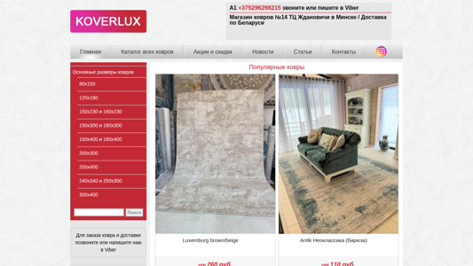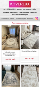 | AI-анализ | This online resource is a carpet shopping website based in Minsk, Belarus. The title of the website is "Магазин ковров в Минске, купить ковер интернет магазин" which translates to "Carpet Shop in Minsk, Buy Carpet Online Store" in English. The description of the website includes information about the store's location in TC Ждановичи and phone number for ordering and delivery within Belarus. The website offers a wide range of carpet sizes from 80x150cm to 300x400cm, with various colors such as beige, gray, and cream. Some popular carpets include the Antik Neoclassica (blue), Viere 0506 gray/beige, Velvet Premium, Soho 8437A gray |