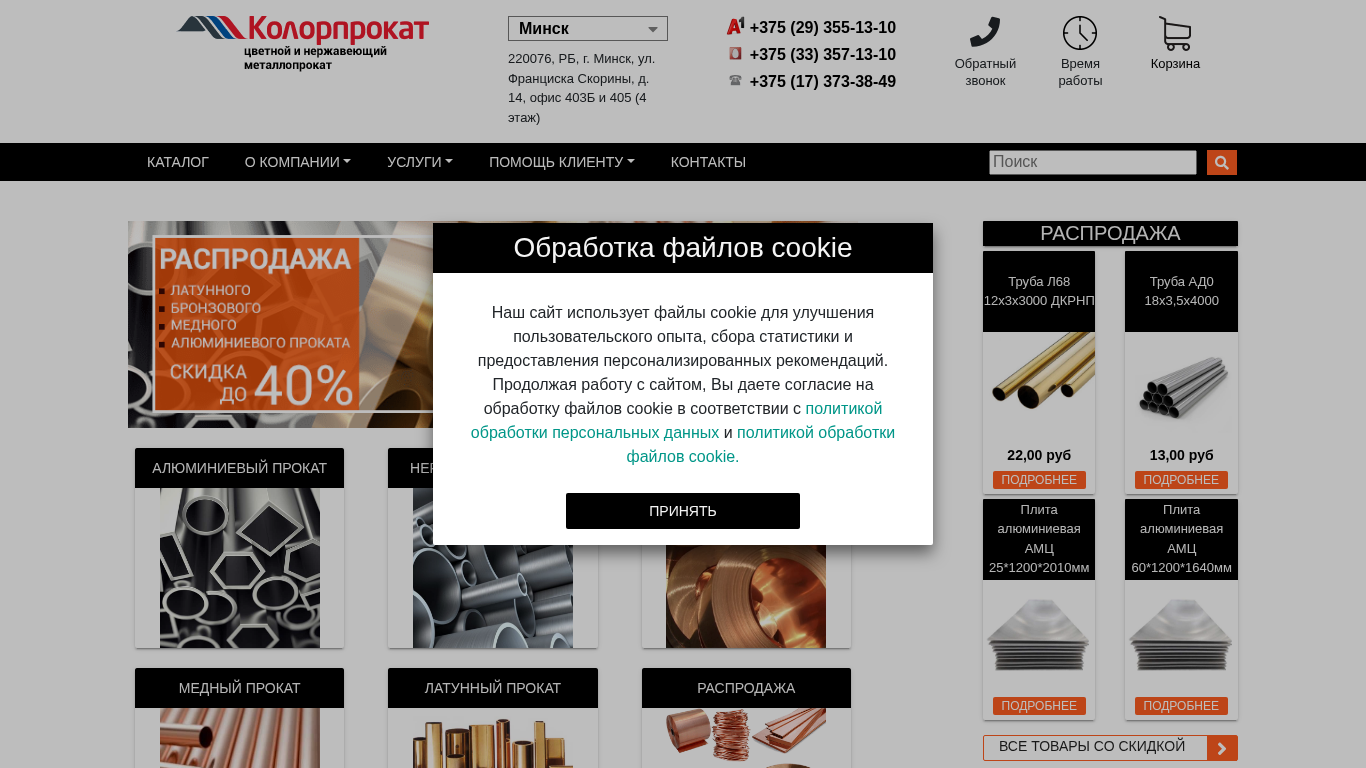| SEO-описание | Купите качественный цветной металлопрокат в Минске по выгодным ценам оптом и в розницу. Широкий ассортимент: медь, алюминий, латунь. Быстрая доставка по Беларуси. Звоните для консультации! |