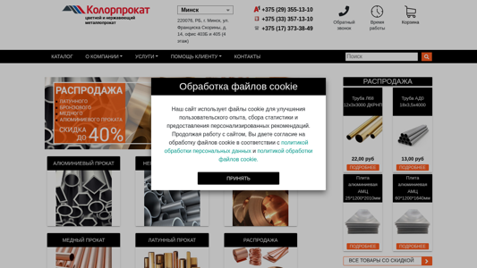| AI-анализ | This online resource is a color metal products store located in Minsk, Belarus, offering both wholesale and retail prices. The extensive product range includes copper, aluminum, brass, and steel. Quick delivery is available across Belarus. For consultation, please call the listed phone numbers. The website provides a catalog, company information, customer reviews, and FAQs. Delivery, cutting, and protective coating services are offered. The site is accessible at 220076, ul. Francisk Skoriny, d.14, office 403B and 405 (4th floor) in Minsk. Phone numbers for contact are +375 (29) 355-13-10, +375 (33) 357-13-10, and +375 (17) |