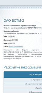 | AI-анализ | This website is the informational resource for Open Joint Stock Company "BELSANTEKHMONTAZH-2" (UNP 100286253) in the global computer network Internet. It covers news and announcements related to the company's activities. The website includes information about the upcoming and past annual and extraordinary general meetings of shareholders, their results, and related documents such as auditor reports and reports on the formation of shareholder registers. The website was last updated on May 19, 2025. |
