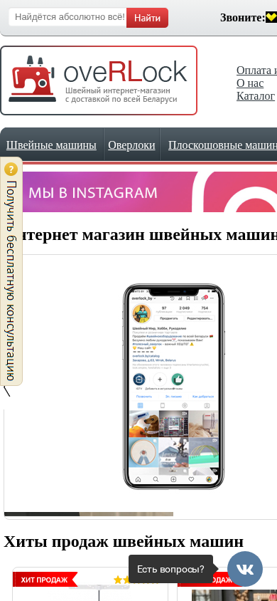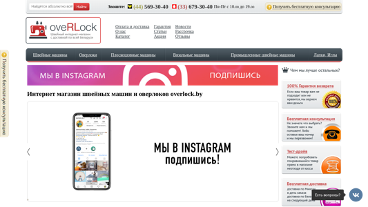 | AI-анализ | The portal is an online shopping site specialized in selling sewing machines and overlocks in Minsk, Belarus. The website is named "Швейный мир оверлок бай" (Shveyny mir overlock bay) or "Sewing World Overlock Bay" in English. The site offers a wide range of sewing machines, including overlocks, vending machines, and embroidery machines from various brands such as Janome, Juki, Brother, Elna, Protex, and Singer. Customers can browse through over 200 sewing machines in the catalog and save time by contacting the shop for assistance or providing their phone number for a specialist to help them choose a sewing machine. The site also features sections for industrial sewing machines, covers, and accessories like needles and threads. The shop offers free consultation and has a section for discount |