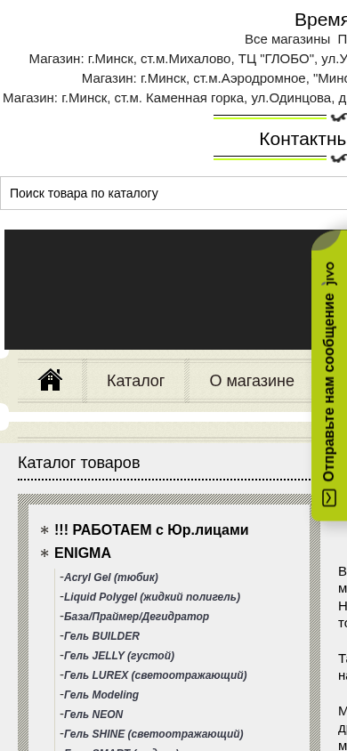 | AI-анализ | This online resource is an e-commerce website dedicated to selling various products for professionals in the beauty industry, including manicurists, pedicurists, cosmetologists, makeup artists, and hairstylists. The title of the website is "Интернет магазин для мастеров маникюра, педикюра, косметологов, визажистов, парикмахеров" (Internet Shop for Masters of Manicure, Pedicure, Cosmetologists, Makeup Artists, and Hairdressers). The description section includes information about the shop's operating hours, which are from 10:00 to 20:00 on weekdays, and the locations of its three physical stores in Minsk, Belarus. The keywords used to describe the website include "гель" (gel), "ге |