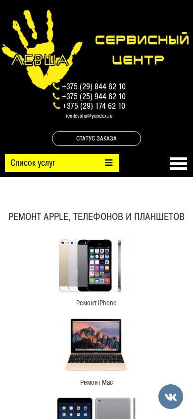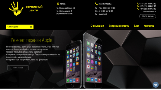 | AI-анализ | The web project "Servisnyy centr Levsha - reмонт vsykh vidov tekhniki v Mohileve" (Service center Levsha - repair of all types of technology in Mohilev) is a website dedicated to a service center offering repair services for various types of technology in Mohilev, Belarus. The project title and description suggest that the center is fully equipped with workshops and boasts a team of highly qualified specialists. Services provided include repair of Apple products, cell phones, tablets, digital and household appliances, televisions, monitors, photo equipment, DJ equipment, computers, laptops, gaming consoles, and coffee machines. The center is located at PervoMAISkaya ul., 40 and Ostrovskogo ul., 5 (Planeта Green 2 этаж) in Mohilev. Operating hours are Monday through Friday |