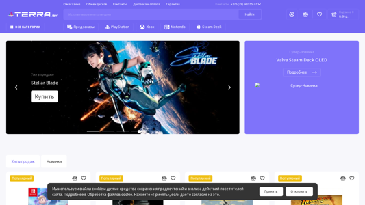 | AI-анализ | The portal TERRA.by is an e-commerce website based in Gomel, Belarus. The website offers a wide range of products, with the top search terms including 'купить' (to buy), 'наличии' (availability), and various product codes and names. The website sells video game consoles, such as PlayStation, Xbox, Nintendo Switch, and others, as well as their respective games and accessories. The website also has a section for computer components, music, cinema, and other categories. Customers can place orders and contact the store through multiple phone numbers provided on the website. The store's hours of operation are listed as 10:00 to 20:00, Monday through Friday. The website has a shopping cart and a catalog with various categories, including PlayStation, Xbox, Nintendo, and others. The website also has a section for trading in |