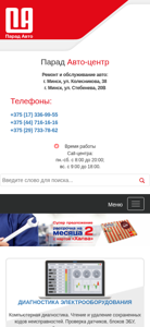| AI-анализ | The web project "Parad Auto" is a large car repair and service center located in the Frunzensky district of Minsk, Belarus. Equipped with modern German machinery and staffed with 15 service stations and 9 lifting platforms, it offers a range of services including diagnostics, repairs, and maintenance for various automotive systems and components. Customers can contact the center via the phone numbers +375 29 325 09 09, +375 33 325 09 09, and +375 17 317 00 06. The repair shop's hours of operation for the call center are Monday through Saturday from 8:00 to 20:00 and Sundays from 9:00 to 18:00. Services provided |