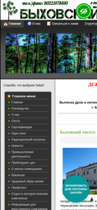 | AI-анализ | The web project "ГЛХУ Быховский лесхоз" is a website for the State Forestry Enterprise "Быховский лесхоз" located in the southern part of the Moгилевskaya oblast in Belarus. The enterprise manages over 113,6 thousand hectares of forest land, of which 102,1 thousand hectares are covered by forests. The organization is responsible for forest management, timber harvesting, processing, and sales both domestically and internationally. The website provides information on the enterprise's structure, contact details, and services. It offers an online form for inquiries and has a section for personal data and fire department contacts. The forestry enterprise is part of the Moгилевskoye Gosudarstvennoye Proizvodstvennoye Obyedineniye |