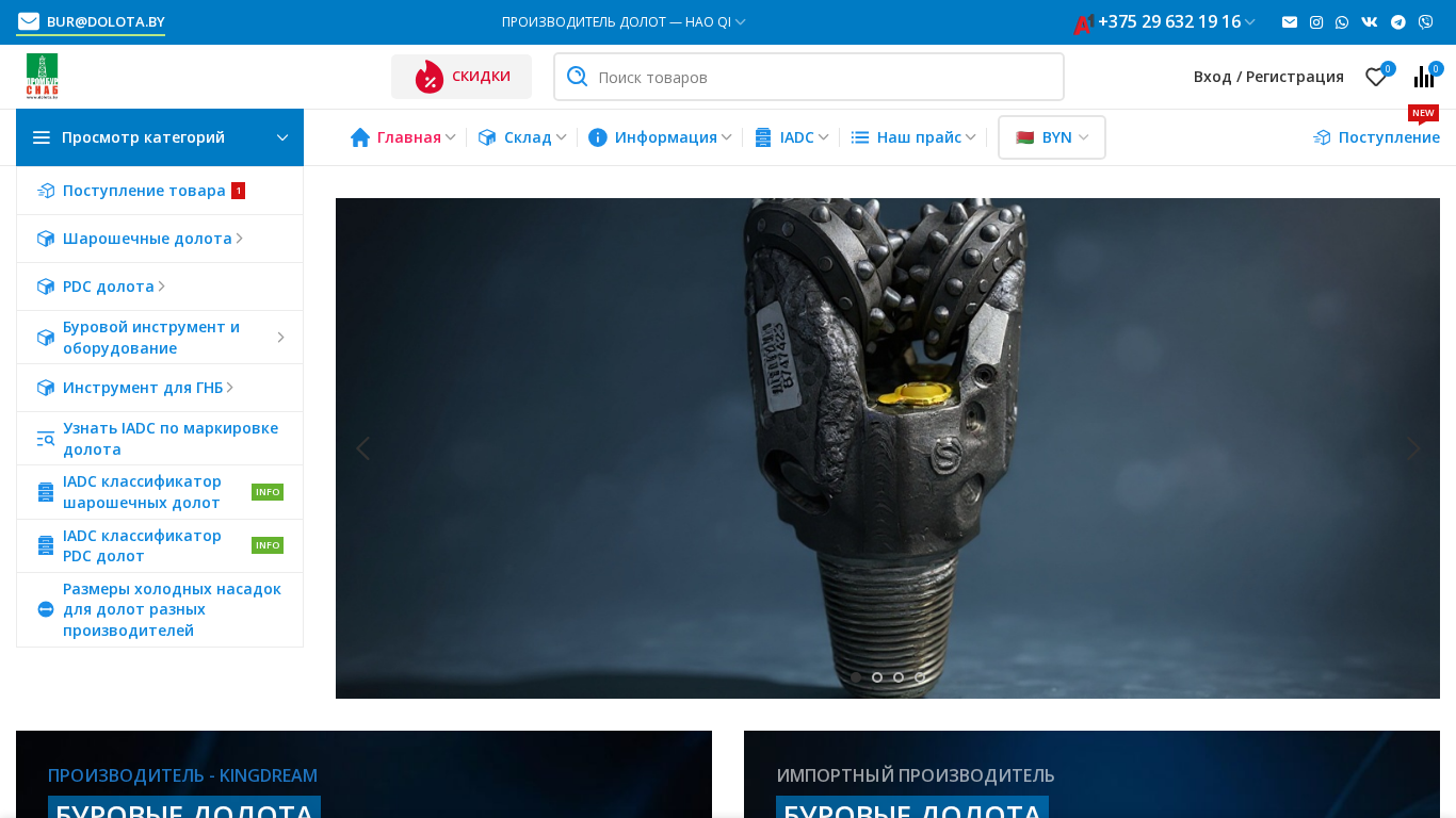 | AI-анализ | --- This website is an e-commerce platform selling shaft drilling tools, with a stock and delivery service. The company is CP Prombursnab. Delivery is available in Belarus, Russia, and Kazakhstan, with a guarantee. The keywords related to the website include 'долота' (dolota, drilling tools), 'ПРОМБУРСНАБ' (Prombursnab, the company name), 'шарошечных' (sharoshchechnyh, shaft drilling), 'буровые' (burovye, drilling), 'pdc' (PDC, specific type of drilling tool), 'лопастные' (lopastnye, propeller-type), 'gnb' (GNB, geothermal drilling), 'byn' (.BY domain), and 'суперцены' |