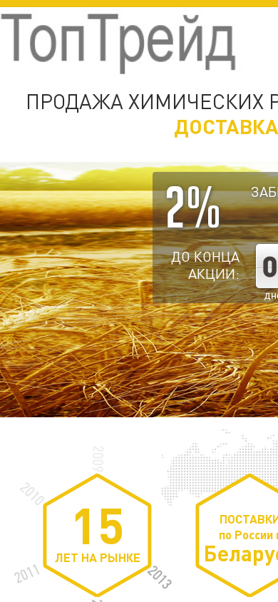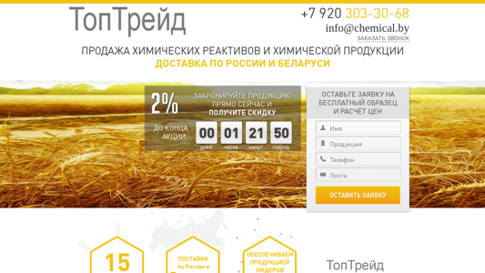 | AI-анализ | This website is for TopTrade, a company selling chemical reactants and chemical products for various industries. The title is "TopTrade | Sale of chemical reactants and chemical products for enterprises of different industries." The description includes keywords related to the sale of chemical reactants and products for industries. The top words on the website include "при" (23 occurrences), "промышленности" (19), "натрия" (18), "производстве" (13), and "применение" (11), among others. The website provides a phone number and email address for inquiries and orders, as well as information on delivery within Russia and Belarus, and a discount offer. The company has been operating in the market for 15 years and supplies products from leading distributors. They offer sodium sulfide, specifically monolithic sod |