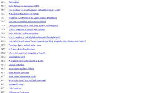| AI-анализ | The website is a personal blog with a focus on technology and related topics. The title is "danluu.com" and the description is blank. The keywords include "good," "why," "that," "with," "some," "company," "you," "google," "bad," and "latency," among others. The top words are "the," "and," "how," "what," "are," "that," "good," "why," "with," "some," and "company." The website contains posts on various topics, including Patreon posts, Codenames, AI bias, the Google antitrust investigation, web bloat, fraud, spam, moderation, writing, latency measurement, major errors, individuals, culture, productivity, and velocity, among others. The domain is .BY. |
