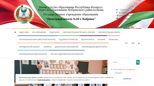 | AI-анализ | The portal sch10.kobrin.edu.by is the website of Primary School No. 10 in the city of Kobrin, Belarus, under the Ministry of Education of the Republic of Belarus. It provides information on the school's administration, schedule, educational programs, documents, and contacts. The website features sections on the "One Window" service, normative documents, administrative procedures, and electronic application forms. Popular requests include information on the school's leadership, visiting hours, and various services. The school's mission for the 2025/2026 academic year includes development plans, parent counsels, and extracurricular activities. The website also offers a catalog of the "School Collection 2023-2024" and updates on educational processes, calendars, and reports on previous years' activities. Additionally, there |