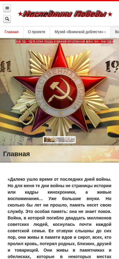 The portal "Geрои моей семьи — Автомеханический колледж" (Heroes of my Family — Automobile Mechanic College) is a website dedicated to the memory of heroes from Belarus during the Great Patriotic War. With a focus on personal stories and family connections, the site includes a virtual museum tour, a book of testimonials, and various brochures and publications. Keywords related to family, war, history, and memory dominate the description, with mentions of Belarus, defenders of the Fatherland, and the 75th anniversary of the Victory in the Great Patriotic War. The site also features films about the war and information about the museum's achievements. The text is taken from the diary of a veteran, gvardey major Mikhailo Miranenka, expressing the importance of remembering the sacrifices made during
