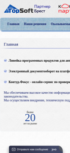 | AI-анализ | --- This website, titled "Топ Софт г.Брест," is associated with software solutions provided by OOO "Топ Софт" in Belarus. The description mentions several software products including "Галактика ERP," "Галактика ECM," "Контур.Фокус," "Галактика AMM," "Галактика EAM," "Сервисная шина предприятия (ESB)," "Галактика НСМ," and "Галактика BI." These software systems are designed for various business needs such as enterprise resource planning, electronic document management, contractor verification, and production process management. The website also offers training and support services for these products. The company boasts over 20 years of experience and over 50 successful projects. Additionally |