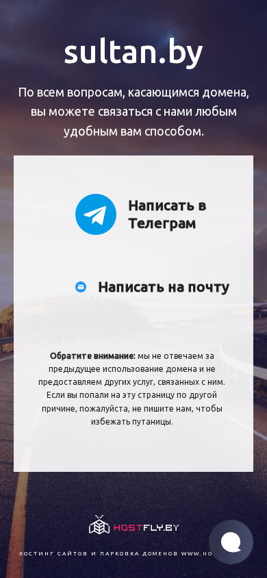 | AI-анализ | This online resource is a website for selling the Belarusian .BY domain name "sultan.by". The website provides contact information for potential buyers, including a Telegram and email address. It is important to note that the sellers do not assume responsibility for any previous use of the domain or related services. The website is hosted by Hostfly. |