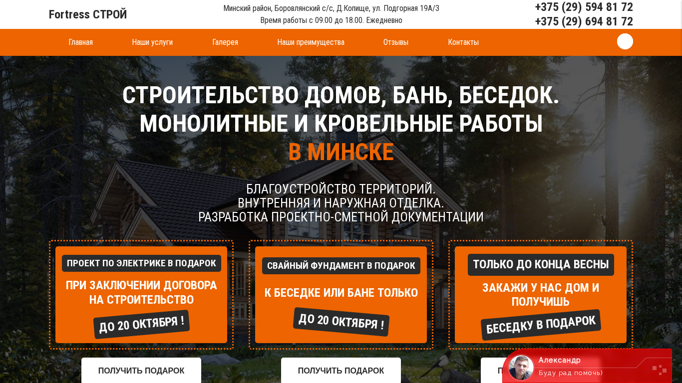 | SEO-описание | Строительство домов, бань, беседок. Монолитные и кровельные работы в Минске. Благоустройство территорий. Внутренняя и наружная отделка. Разработка проектно-сметной документации. |