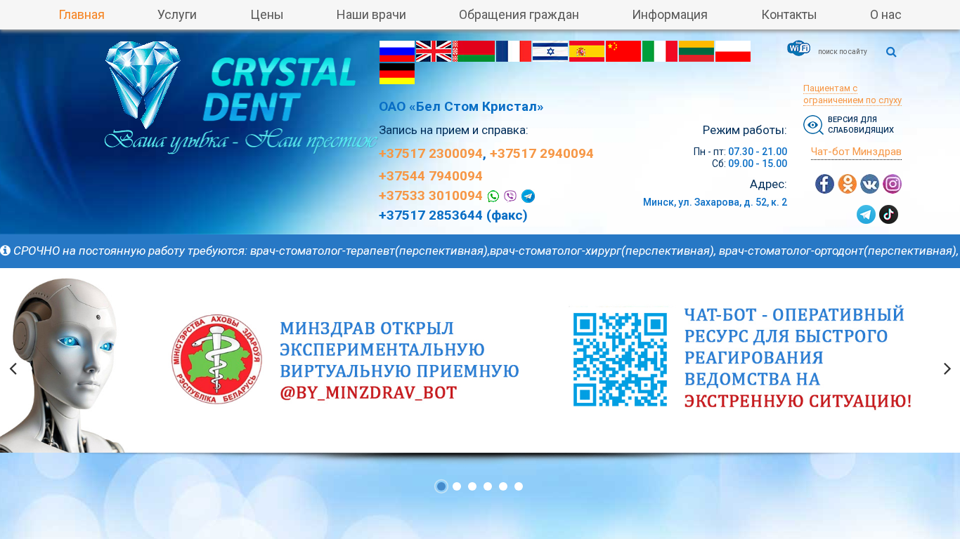 | Название / Заголовок | ОАО «Бел Стом Кристал» (9 стоматология) - Лечение зубов в Минске |