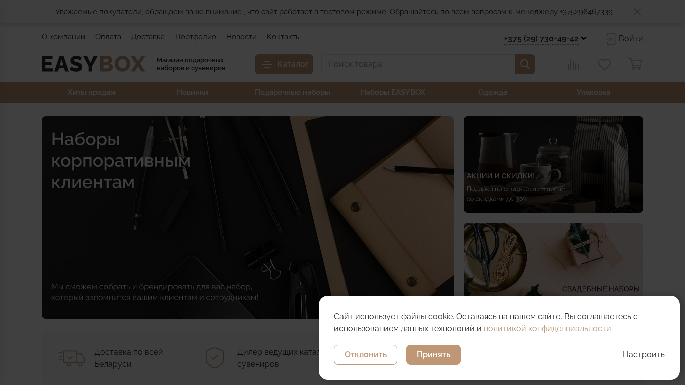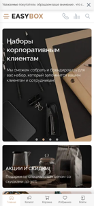 | AI-анализ | The web project 'Корпоративные Подарки, Прямые поставки, Шоурум, Склад' (Corporate Gifts, Direct Supplies, Showroom, Warehouse) is a company website named Izibox. The site contains information about the company, payment, delivery, news, and contacts. It offers a catalog of gift boxes and souvenirs for various occasions and categories such as new year and roses, tea and coffee, professional holidays, gastro nomic, welcome-box, leather, road, with thermos and thermocruches, with accumulators, with flashlights, with columns, with plumes, with multitools, wine, kitchen, for whiskey, for home, sportive, for growing, for men, for women, for children, with diaries, with handles, product, tea and coffee for picnic, |