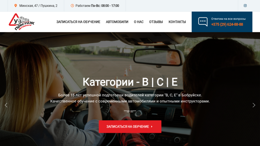 | SEO-описание | Обучение вождению в Бобруйске. Только новые автомобили. Категории - B, C, E. Рассрочка платежа и низкие цены. Опытные инструктора. |