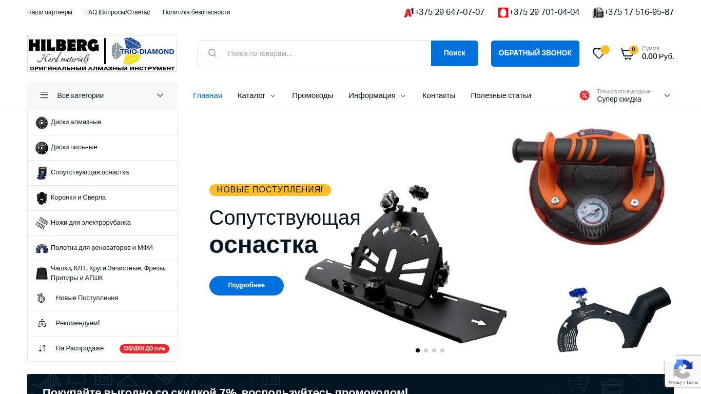 | SEO-описание | Официальный дистрибьютор алмазного инструмента Hilberg. Купить алмазные диски и диски пильные в Минске с доставкой от Hilberg.by |