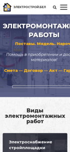 | AI-анализ | The web project "ЭЛЕКТРОСТРОЙ.БЕЛ" offers electrical mounting works for physical entities under the title "Услуги электрика" in the locations Mядель and Нарочь, Belarus. Key services include electrosnabzhenie (electro-snaabding), montazh (montage), and elektroprovoedki (electro-proводки, electrical wiring). The company provides services for homes, projects, electro-otoplenie (electro-heating), and electrosnabzhenie stroyploshchadki (electro-snaabding of construction sites). The website includes a phone number for inquiries and a form to leave a request. The project also offers projects for electro-otoplenie (electro-heating) and electrosnab |