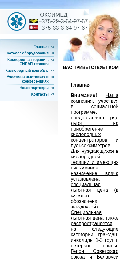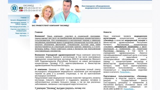 | AI-анализ | This online resource is a Belarusian e-commerce website specializing in the sale of respiratory medical equipment at affordable prices. The website offers a variety of products including oxygen concentrators, pulse oximeters, and SiPAP apparatus for purchase. Customers can find detailed information on the website about various types of medical oxygen equipment such as oxygen bottles, oxygen tanks, nebulizers, CPAP, BiPAP, and APAP machines. The website also mentions a special discount program for individuals in need of oxygen therapy and holding a doctor's prescription, as well as for disabled persons, veterans, Heroes of the Soviet Union, and Heroes of Belarus with proper documentation. Additionally, the website offers a program for replacing outdated medical oxygen concentrators with new ones from the company Oximed F7-5. The company, Oximed, has been providing a full range of medical oxygen equipment |