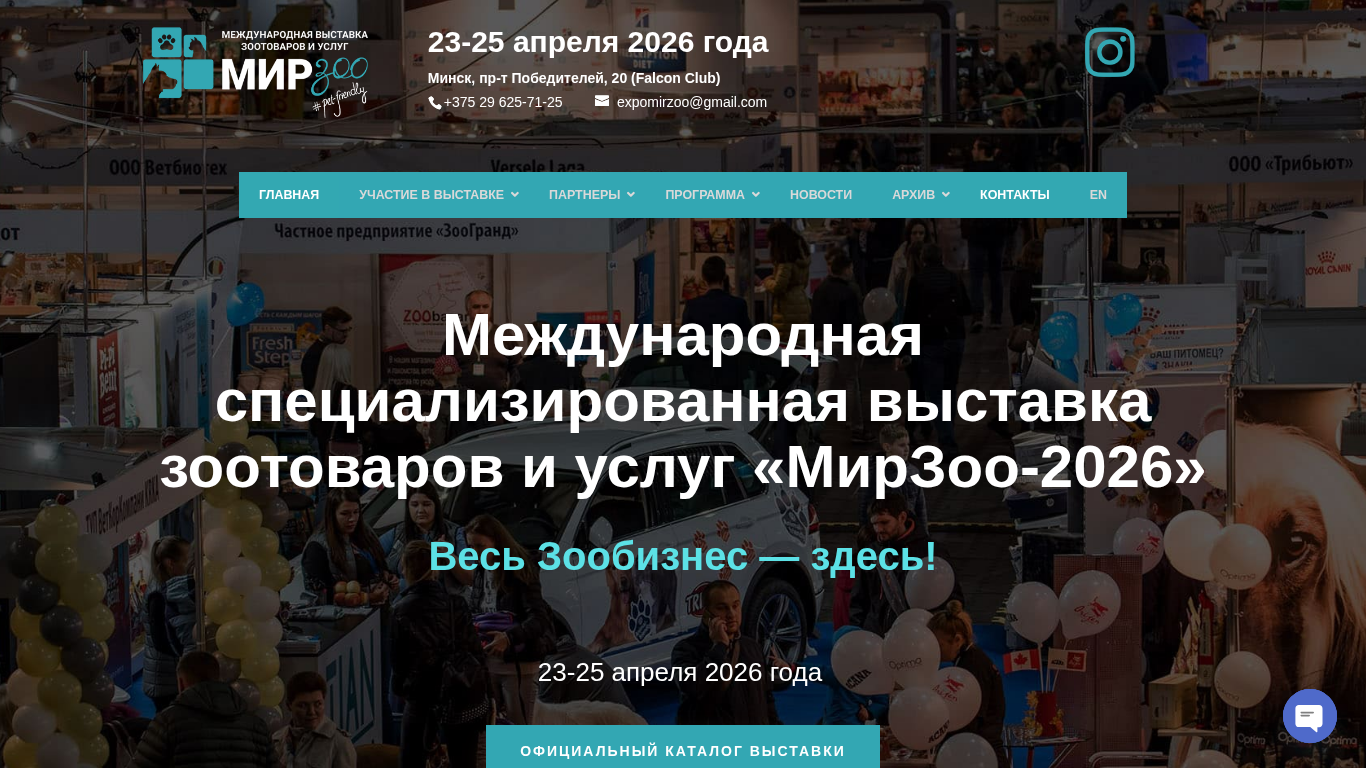 | AI-анализ | This online resource is a website dedicated to the International Exhibition of Animal Products and Services, also known as MirZoo-2026. The exhibition is scheduled to take place on April 23-25, 2026, in Minsk, Belarus, at pr-t Pobeдителей, 20 (Falcon Club). The website provides information about the event, including its program, participant list, and contact details. Visitors can find sections on thematic areas, registration forms, additional PR opportunities, general participation conditions, subsidies, design and booth rentals, equipment rentals, company accreditation, accommodations, and partnership opportunities. The site also features news, photo and video galleries, and reports from previous years. The main focus of the exhibition is on producers and suppliers of goods for domestic, decorative, and small animals, birds, fish, re |