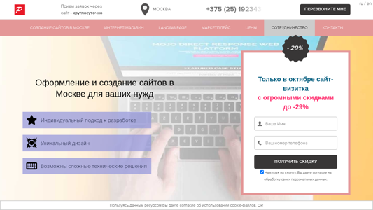 | SEO-описание | Создание сайтов «под ключ» – заказать разработку сайта в Москве по низкой цене со скидкой до 19%. |