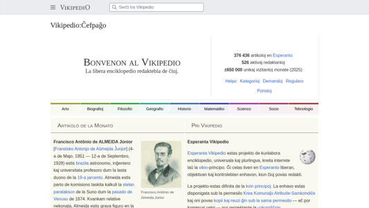 | AI-анализ | The web project Vikipedio is an Esperanto Wikipedia, a collaborative and multilingual free encyclopedia created based on the wiki principle. It aims to provide a free, objective and controllable content, accessible to anyone who wishes to contribute. The project is defined by five principles: the content is available under the Creative Commons Attribution-ShareAlike license and can be copied and reused for commercial purposes, provided the source is credited and the conditions are respected; all contributors are volunteers who collaborate in the community, without hierarchy, where their interests align with project themes and numerous discussions take place; they follow the basic regulations established by the community, such as the principle of verifiability. The main page of the site features a donation call and a search function. The site contains over 376,000 articles and has approximately 526 active editors and over 6 |