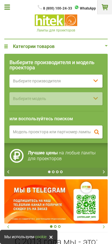 | AI-анализ | The portal Hiteklamp specializes in providing lamps for projectors. The description indicates free shipping within Russia and the CIS. The website targets keywords related to projector equipment, specialized lamps, DMD chips, and projector components. The top words include 'reading', 'fully', 'advantages', 'lamps', 'different', 'all', 'Christie', 'projector', 'projectors', 'lamp', 'Acer', 'vision', 'combines', 'self', 'technologies', 'companies', 'Optoma', 'projectora', 'delivery', 'reviews', and 'contact'. The website offers a chat site, company information, blog, news, payment and delivery information, and contact details. It operates from an office in Moscow, Russia. The website features categories for lamps for projectors, 3D perception, and various brands. It |