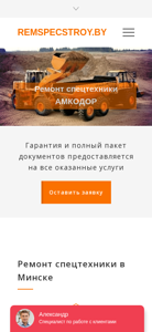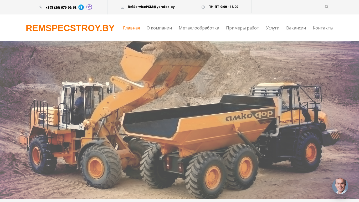 | AI-анализ | --- The portal Remspecstroy.by offers repair and maintenance services for special machinery and heavy vehicles in Minsk, Belarus. Brands served include Amcoador and MTZ, with accessible pricing. The company provides capital repair services, metal processing using plasma cutting, lathe and milling work, and dross destruction. Examples of completed work and videos showcasing their services are available on the site. In addition to Minsk, the company offers repair services in various Belarusian cities including Grodno, Brest, Vitsebsk, Homel, Mohilev, Minsk, Mogilev, Pinsk, Borisov, Baranavichy, Bobruisk, Soligorsk, Slutsk, Orsha, Novopolotsk, Lida, Molodechno, Polotsk, Zhobina, Svetlogorsk |