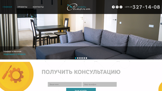 | AI-анализ | This website is dedicated to providing renovation and decoration services for apartments, cottages, and offices in Minsk and Belarus. The main projects section includes details about several projects such as "Sun, Sea, Breeze in Your Hair: A Modern Loft for a Young Family in Minsk," "Ideal Formula for a Nap in a Mediterranean Color Palette," "Contrast Loft," "Comfort in the Details," and "Creativity in Every Detail," among others. Users can find contact information for the company, including a phone number, at the bottom of the page. The website also features a portfolio of completed projects and a section for receiving consultations and placing orders. The company has over ten years of experience in the renovation and decoration industry and offers a full range of services, from design projects by leading studios to complete project management, including financial reporting and a five- |