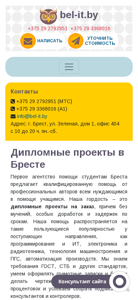 | AI-анализ | The website is a service based in Brest, Belarus, offering help to engineers and students with their diploma projects, reports, kursovyi (course) works, and control assignments. The service guarantees quality and experienced specialists, and claims to meet deadlines for various technical and engineering fields, such as programming and IT, electronics and radio technology, technology of machine building and PGs, and automation of production. The site also offers assistance with writing reports for practical training, including pre-diploma, production, analytical, engineering, and informational reports for various educational institutions including universities and colleges. The service can help with the preparation of applications and proper formatting, and can often deliver the reports within a few days with the necessary program, individual assignment, and organization name. Additionally, the website provides help with writing kursovyi (course) works for all disciplines in the humanities |