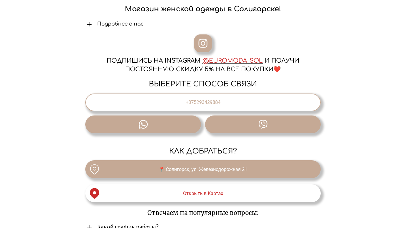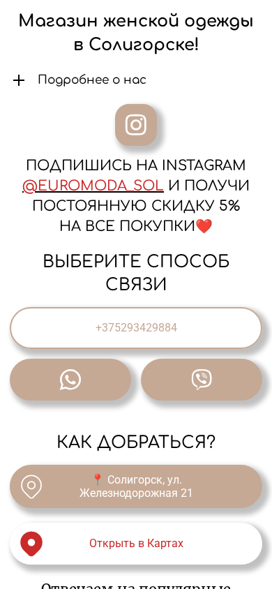 Адресул. Железнодорожная 21","value":"https://g.page/euromoda_sol?share","animation":"blink","thumb":