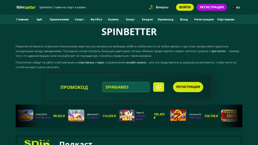 | Название / Заголовок | Spinbetter Ставки на спорт и казино ᐉ Регистрация |