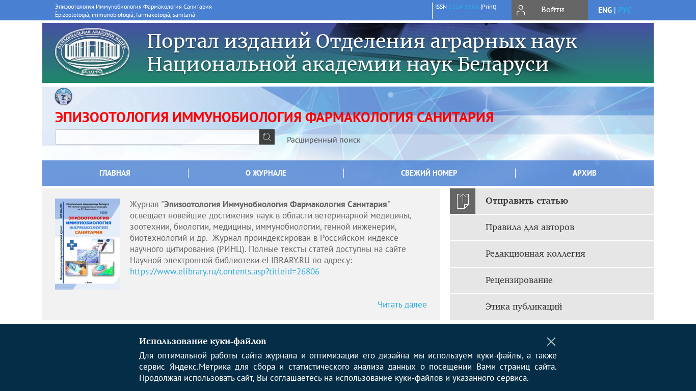 | SEO-описание | Научный рецензируемый журнал "Эпизоотология Иммунобиология Фармакология Санитария" |