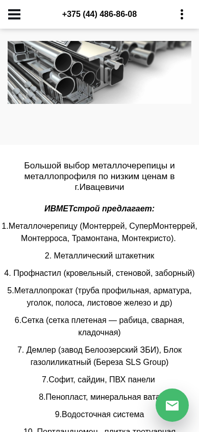 | Название / Заголовок | Профильная труба. Металлочерепица. Профнастил. Цемент в ИВМЕТстрой г.Ивацевичи |