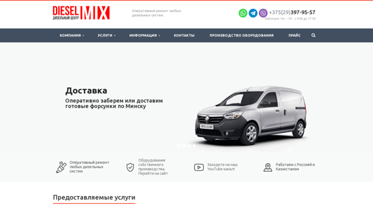 | AI-анализ | --- The portal Diesel Service Dieselmix offers a full range of services for the repair of diesel fuel systems in Minsk. Exact diagnostics and repair of Common Rail, TNVD, injectors. We will restore power and reduce fuel consumption. |