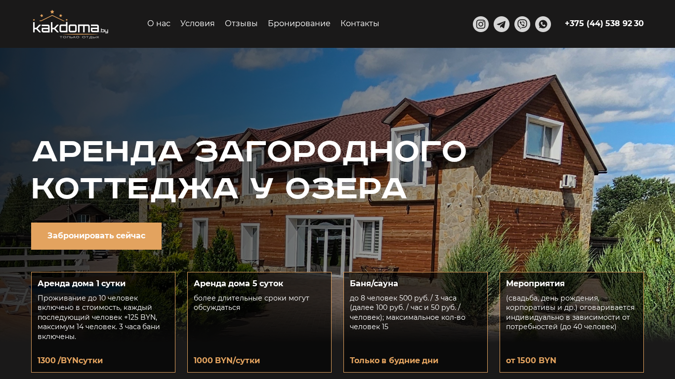 | SEO-описание | Забронируйте коттедж у озера в Логойском районе по доступной цене. Аренда загородного дома с баней/сауной и большой территорией для игр и отдыха. Максимум 14 человек. |