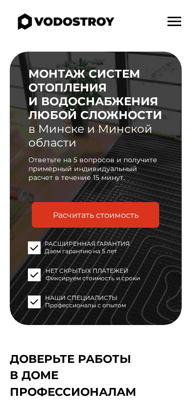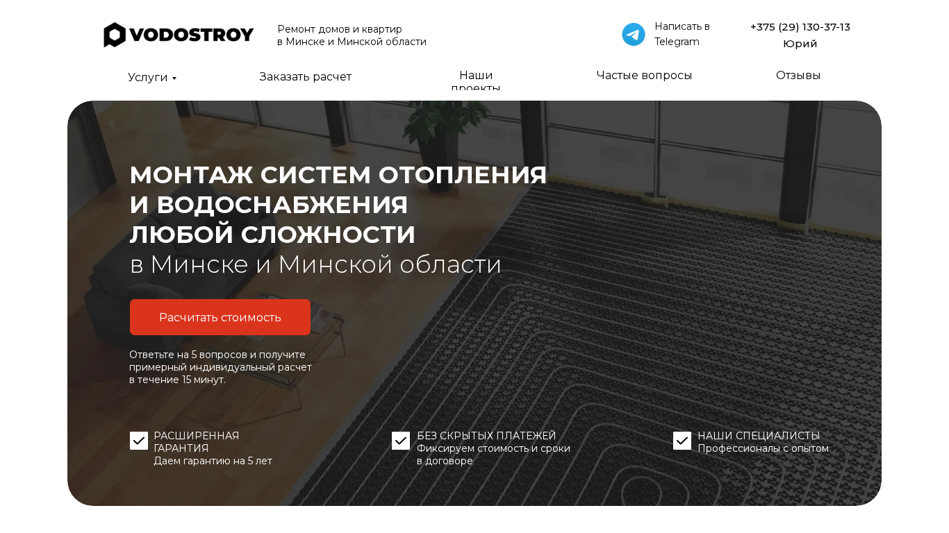 | SEO-описание | Профессиональный монтаж систем отопления и водоснабжения недорого в Минске и Минской области. Гарантия на все виды работ. Прозрачная смета |