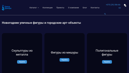 | AI-анализ | --- This website is an online catalog for light decorative figures, specifically for New Year's Eve, from a manufacturer of illuminated structures. Products include animal-shaped and volumetric compositions, available for purchase at a low price. The website offers a catalog, menus to navigate through different product categories such as light figures of animals, and various decorative elements including snowmen, arches, tunnels, and Christmas trees. The company also provides completed projects and a blog for customer inspiration. The website is available at zavod-decora.by. |