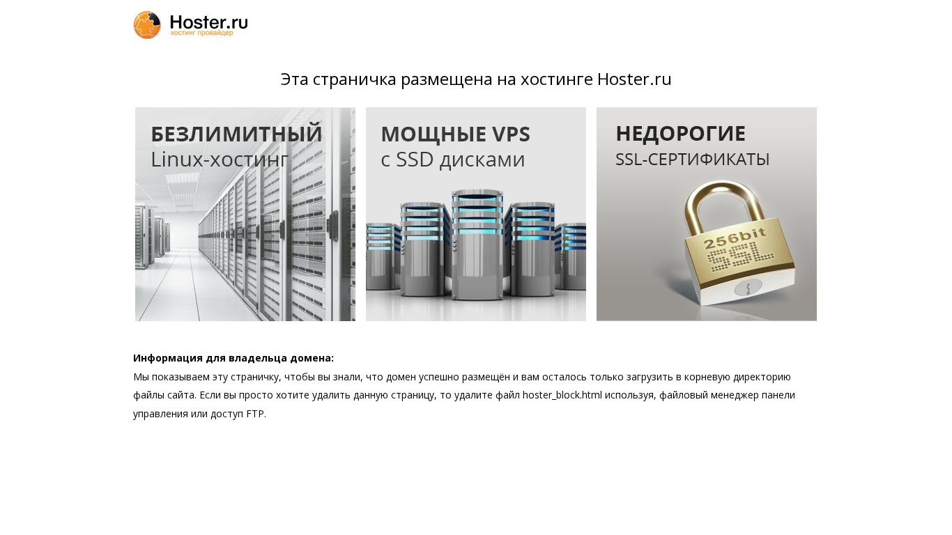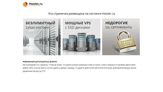 | AI-анализ | The portal Hoster.ru is a hosting information website for Belarusian .BY domain owners. It provides information on the successful placement of a website on the Hoster.ru hosting service, and instructs users on how to remove an unnecessary information page associated with the domain. The webpage in question, hoster\_block.html, can be deleted using the file manager or FTP access provided by the hosting service's control panel. |