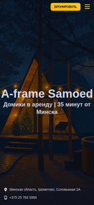 SEO-описаниеУютные A-frame домики в аренду всего в 35 минутах от Минска. Идеальное место для отдыха: купель на дровах, баня с бассейном, свежий сосновый воздух и уникальный треугольный дизайн. Забронируйте дом на сутки уже сегодня!