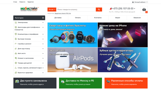 | AI-анализ | This website is an online shopping mall, Mobistyle.by, offering the best prices and fast delivery for a wide range of products including accessories for phones and electronics, household appliances, items for children, gardening and home improvement, power tools, and climate control technology. It features operational delivery, multiple payment options, financing and credit, and cashless transactions. The website offers excellent prices on all product categories. Keywords associated with the site are 'internet-mall', 'sale of accessories', 'household appliances', 'gardening and garden tools', 'climate control technology', and 'goods for children'. Top words on the site include 'no', 'accessories', 'phone', 'delivery', 'order', 'payment', 'home', 'garden', 'climate', 'children', 'electronics', 'online', 'sale', and 'prices'. |