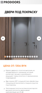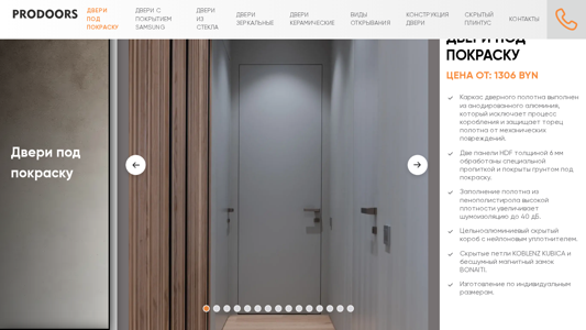 | AI-анализ | --- This online resource, ProDoors.BY, offers a variety of doors for sale. The website includes hidden doors, with a significant focus on interior doors without additional costs. The extensive catalog showcases doors made of different materials such as HDF, glass, and mirrors, with various opening mechanisms and construction types. The site also provides consultation services and design assistance. Located in Minsk, Belarus, customers can contact the business at the given phone number and email for inquiries and appointments. Doors are available in various sizes and can be ordered for home measurements. The site features doors with prices starting from 1306 BYN for doors with an aluminum carcass and HDF panels treated with a special coating and ground for painting, and insulated with high-density polyurethane foam for improved sound insulation. Another offering is doors with Samsung interior, priced from 1 |