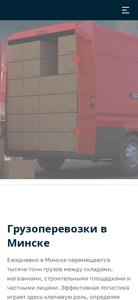 | SEO-описание | Автомобильные перевозки грузов по Минску и Беларуси с грузчиками и без. 🚚 Быстрые грузоперевозки с гарантией сохранности. ⚡ До 3 тонн, 20 м3. ⚡ Заказ онлайн. |
