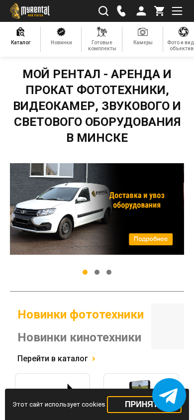 | Название / Заголовок | Аренда фототехники и видеооборудования в Минске, цена, прокат Myrental |