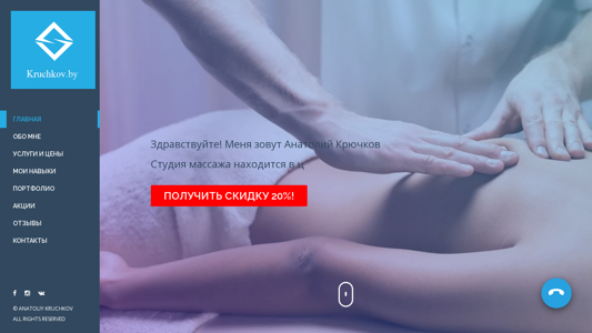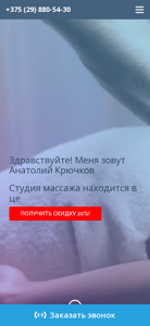 | AI-анализ | This website is an appointment booking and information platform for a massage studio in Mogilev, Belarus, offering various types of LPG (Light Penetrating Gas) massages such as anti-cellulite, sphere, classic, and relaxation massages. The prices range from 25 rubles for a 30-minute session and the masseur is named Anatoliy Kruchkov. The contact number is +375 (29) 880-54-30. The website provides additional information about the studio, the masseur's background, and the available services and prices. Keywords associated with the website include 'apparatus massage Mogilev', 'massage lpg in Mogilev', 'anti-cellulite massage Mogilev', 'massage sphere Mogilev', 'massage for feet', ' |