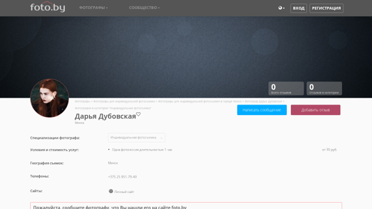 | AI-анализ | This website belongs to photographer Darya Dubovskaya from Minsk, Belarus. The main focus of the site is on individual photo shoots, as indicated by the category title and the description. The photographer works in Minsk as a photographer for individual photo sessions. |