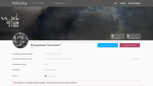 | AI-анализ | This website belongs to photographer Vladimir Pokalyuk from Minsk, Belarus, specializing in 'Predметная фотосъемка' or subject photography. The site showcases his work in this category. Vladimir works in various photographic genres in the city of Minsk and boasts a large practical experience and professional equipment, ensuring high-quality images. |